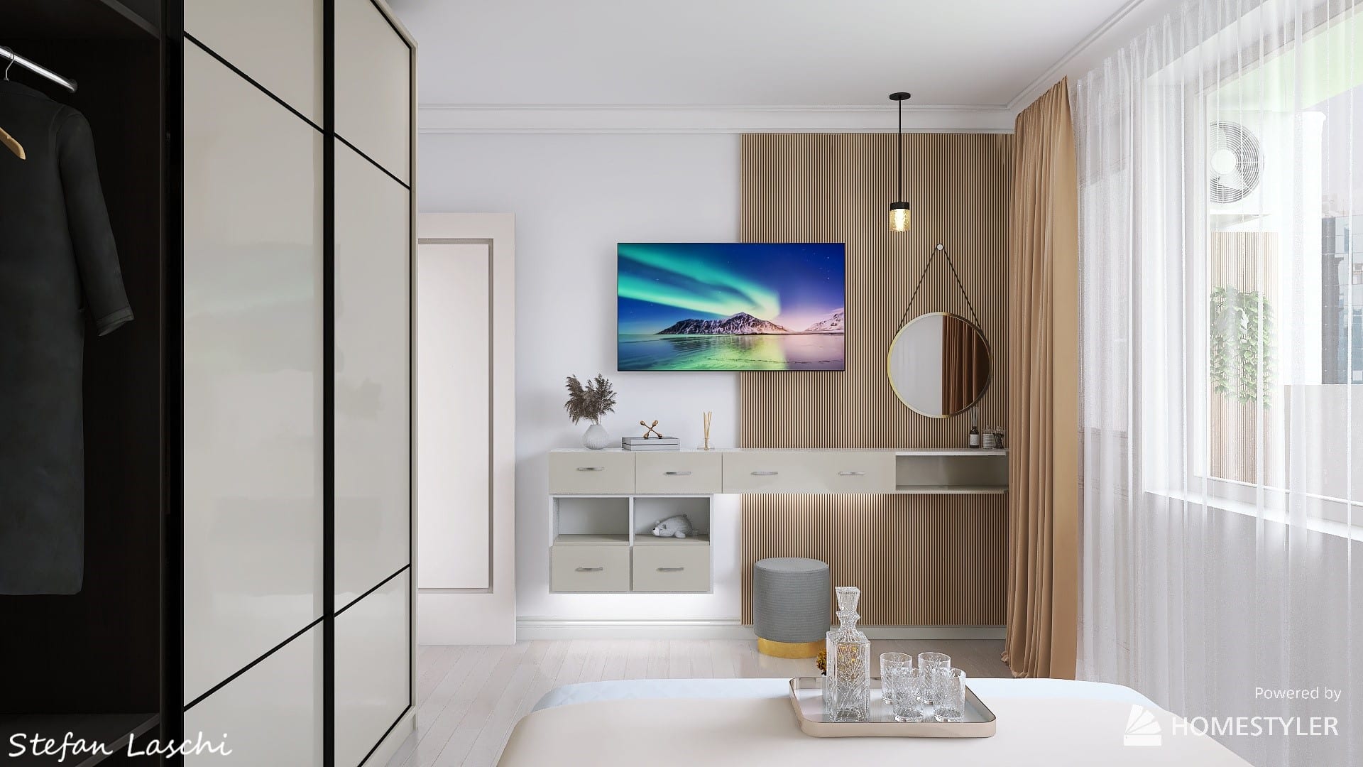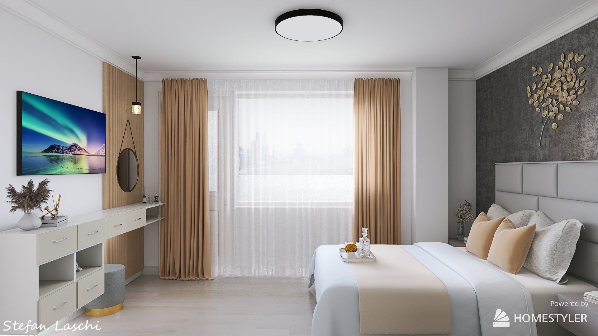 Amenajare interioara apartament cu 3 camere. Acest design a fost realizat pentru un client din orașul Suceava (ne deplasăm și în alte orașe din țară). Design interior elegant, modern și creativ, în nuanțe calde de bej și crem cu accente personalizate. Proiect 3D realizat de Stefan Laschi, designer acreditat. Realizăm proiecte de design interior și amenajări interioare pentru toate tipurile de imobil, pentru spații rezidențiale, birouri, spații comerciale, hoteluri, spatii medicale, restaurante, săli de evenimente.